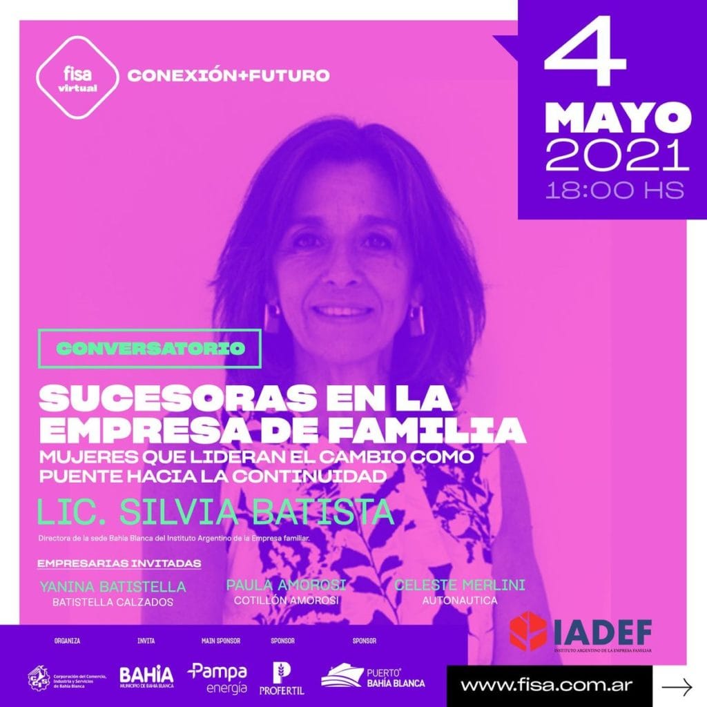 Este martes Silvia estará a cargo del Conversatorio «SUCESORAS en la EMPRESA de FAMILIA. Mujeres que lideran el cambio como puente hacia la continuidad”, en el marco de la Feria FISA VIRTUAL 2021.