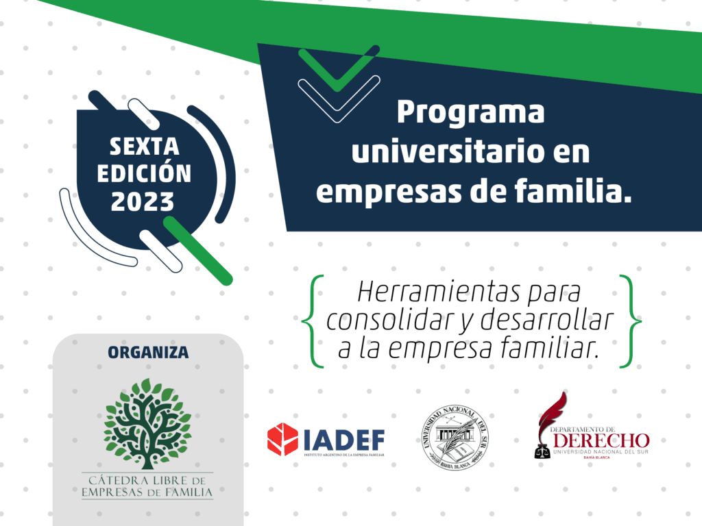 Empresas Familiares que colaboren en dar continuidad al legado de los fundadores. Es un convenio de colaboración entre el Instituto Argentino de la Empresa Familiar (IADEF) y el Departamento de Derecho de la Universidad Nacional del Sur (UNS).