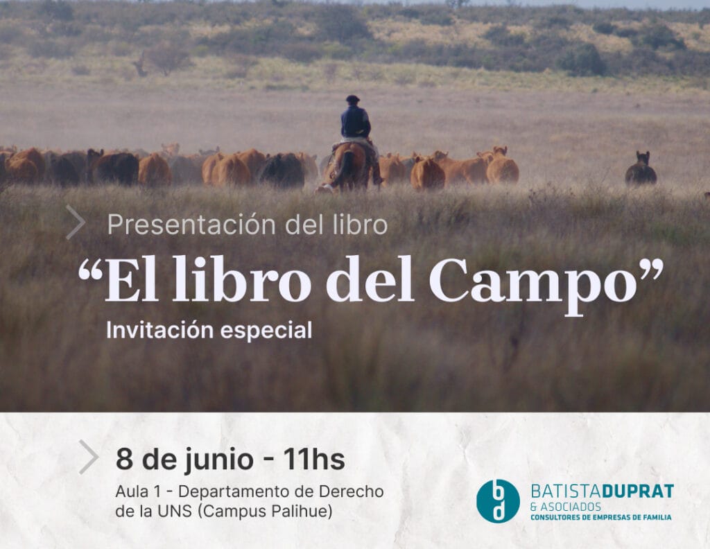 La Cátedra Libre de Empresas de Familia, el Departamento de Derecho de la Universidad Nacional del Sur y el Instituto Argentino de la Empresa Familiar organizan la presentación de la obra «El Libro del Campo»! 📚🌾 .